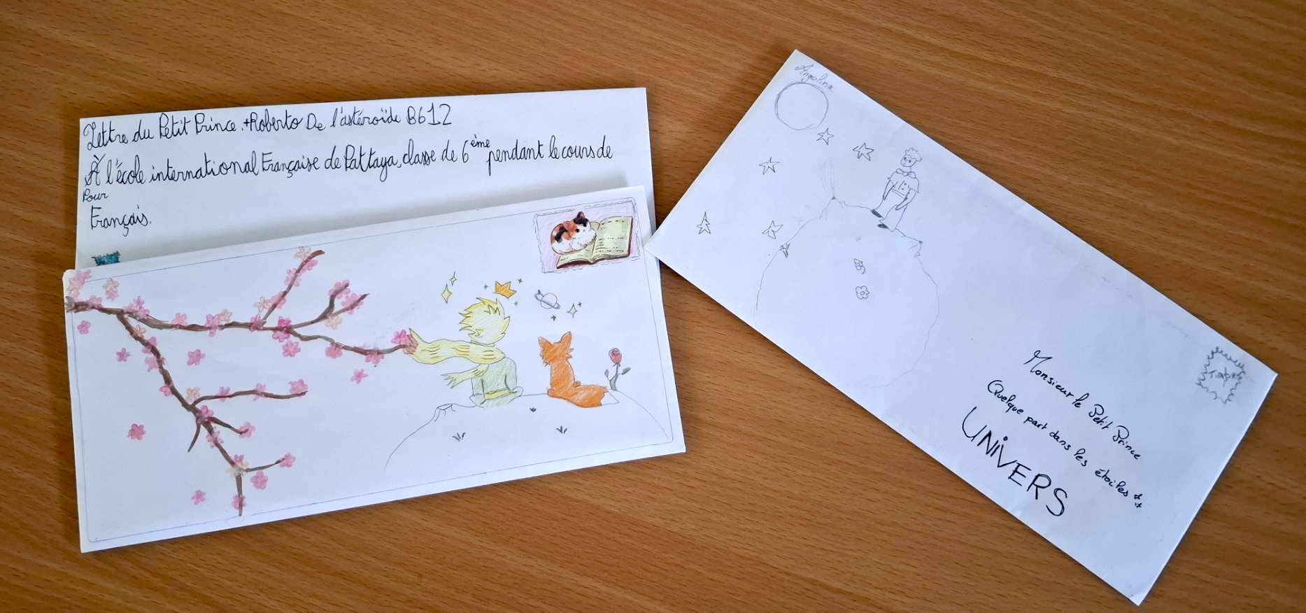 With their French teacher, the students of the 6th grade read and worked on Antoine de Saint Exupéry’s famous book “Le Petit Prince”. Following this work, each student wrote, in their choice, a letter to the Little Prince or a letter to the teacher to tell her about her understanding of the book.